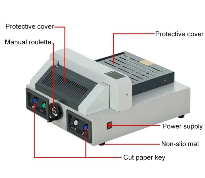 - Gain de Place : Ses dimensions optimisées (50x56x27cm) en font l’un des massicots électriques les plus compacts du marché, sans sacrifier la stabilité (35kg).